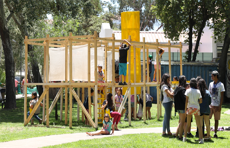 Este prototipo contempla la reutilización de paneles electorales para la construcción de un dispositivo a instalar en un espacio urbano de carácter residual, en conjuntos de vivienda social en Santiago. Estos espacios no cuentan con una mantención constante y frecuentemente se deterioran y pierden su uso, aumentando la vulnerabilidad y segregación socio espacial. El trabajo contempló el diseño de prototipos que fueron evaluados por la comunidad, para la elección del proyecto a construir, el cual fue un módulo de juegos infantiles.
