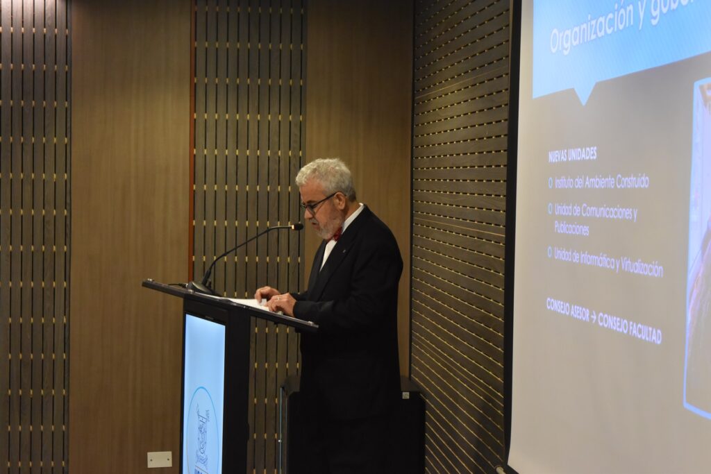 “Durante estos dos años de intensa labor, junto a un equipo humano comprometido, construimos los cimientos de una facultad con identidad propia, visión interdisciplinaria y vocación pública, orientada a abordar los grandes desafíos del habitar contemporáneo. Presento esta Cuenta Pública con la convicción de haber cumplido el mandato conferido por el Rector y la Junta Directiva de la Universidad, y con el propósito de dejar testimonio del camino recorrido, de los aprendizajes obtenidos y de los desafíos que nos esperan en la consolidación de este proyecto académico”, expresó del decano saliente previo a la ceremonia.